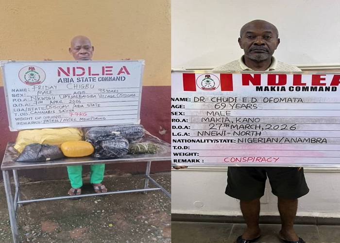 A 93-year-old man and a 69-year-old medical doctor have been arrested by the operatives of the National Drug Law Enforcement Agency (NDLEA) over alleged drug trafficking.