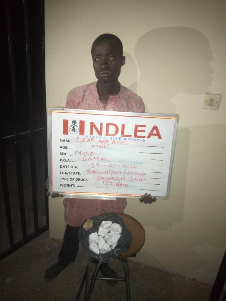The operatives of the National Drug Law Enforcement Agency (NDLEA) have a male deaf and dumb suspect for allegedly dealing in illicit substances in the Samaru area of Zaria, Kaduna State.