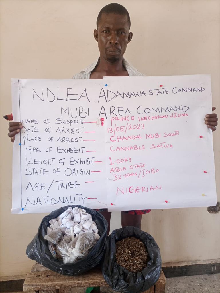 The operatives of the National Drug Law Enforcement Agency (NDLEA) have arrested a 32-year-old notorious drug dealer and ex-convict, Prince Ikechukwu Uzoma, with 1kg of skunk in the Mubi area of Adamawa State.