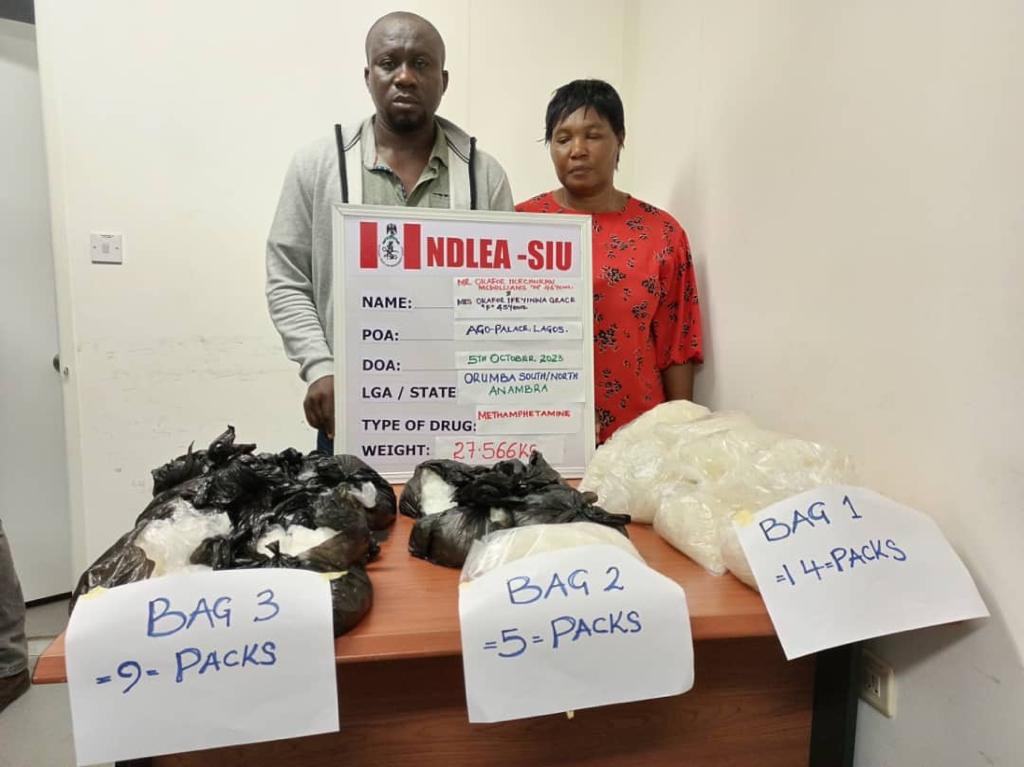The head of another cartel, Okafor Ikechukwu Williams (aka Jantu) and his wife, Okafor Ifeyinwa Grace were also taken into custody on Thursday 5th October when NDLEA operatives raided their hideout at 9 Awa Street, Ago Palace, Okota area of Lagos.