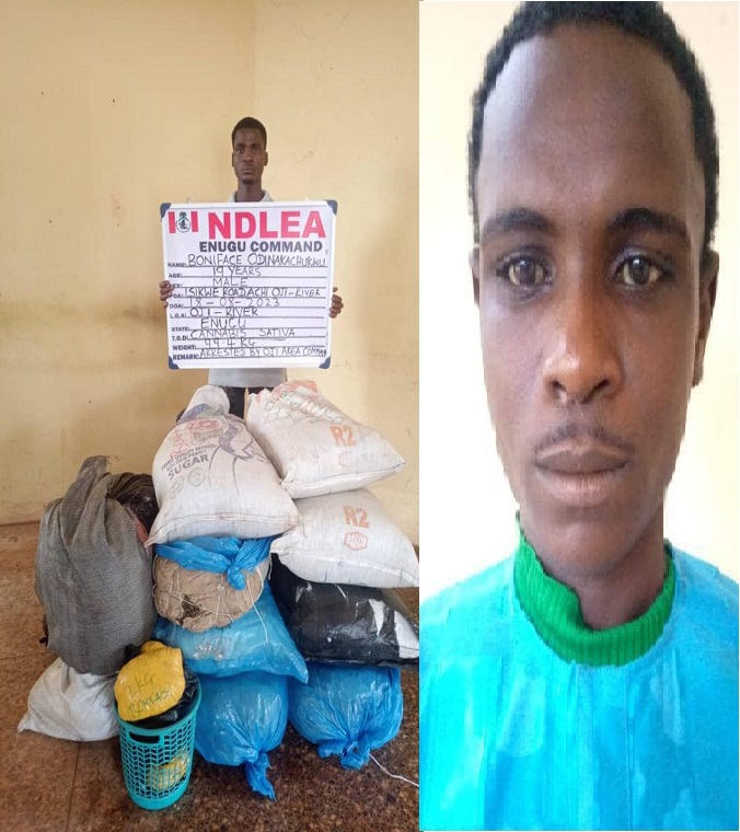 He noted that another teenager, Boniface Odinakachukwu, was apprehended with 99.4kg skunk at Isikwe Road, Achi in Oji-River Local Government Area of Enugu State on Friday, August 18.