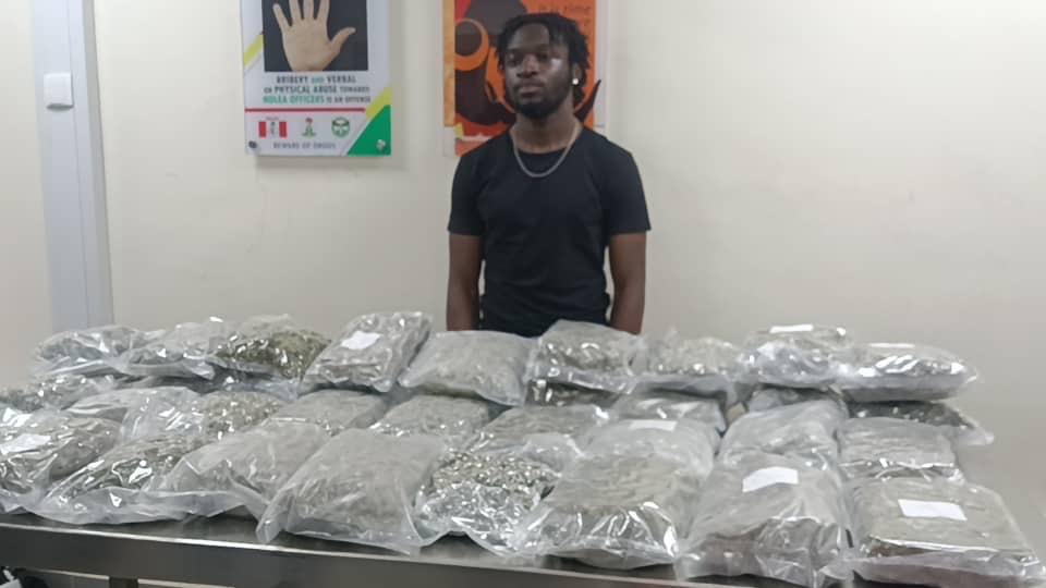 The operatives of the National Drug Law Enforcement Agency (NDLEA) have intercepted a 20-year-old Ghanaian-British man, Parker Darren Hazekia Osei, with 36 parcels of Loud, a strong strain of cannabis, at the Murtala Muhammed International Airport in Lagos State.