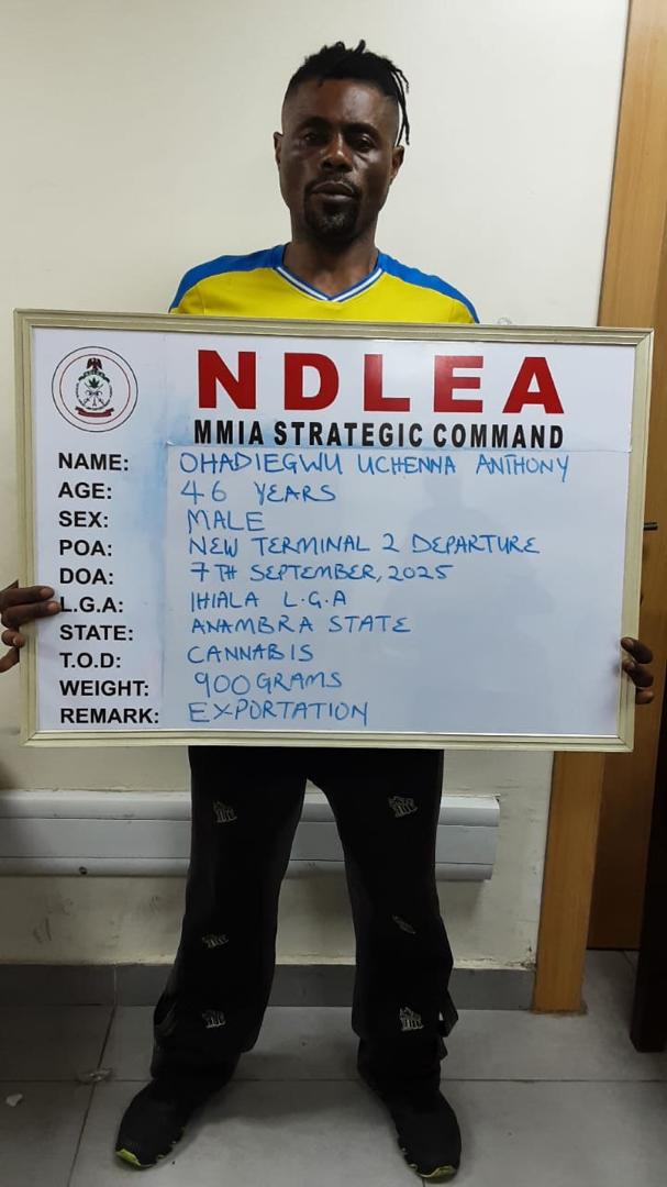 Babafemi said NDLEA officers, at the Terminal 2 departure gate of the Lagos airport, intercepted a passenger, Onyeganochi Stanley Ifeanyi, while travelling on a Qatar Airline flight to Doha on September 7.