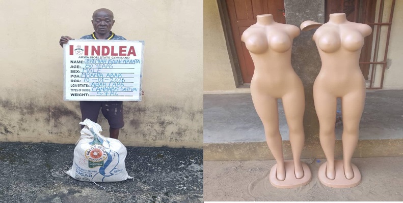 Babafemi said the NDLEA operatives, in another operation in Akwa Ibom State, intercepted a 37-year-old businessman, Ani Onyebuchi Romans, while travelling with full body mannequins for his clothing business in Cameroon.