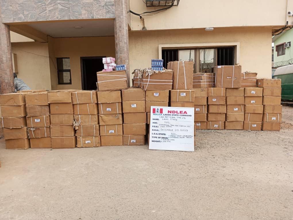 He noted that the NDLEA operatives, on Wednesday, December 20, conducted a search operation on two shops marked Chex Mat Global Link Limited at Trade Fair complex in the Ojo area of Lagos where 258 cartons of codeine-based cough syrup and eight cartons of codeine tablets were recovered.