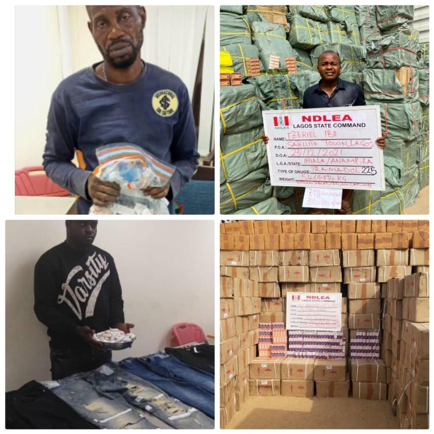 Operatives of the National Drug Law Enforcement Agency (NDLEA) have seized 8,381,600 capsules and tablets of Tramadol as well as 56,782 bottles of codeine among others in major raids in Lagos state.
