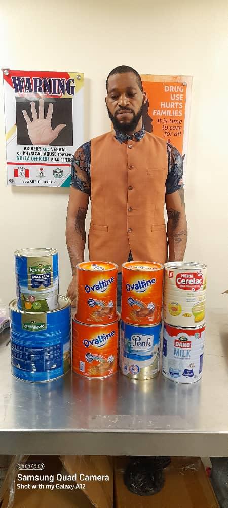 The operatives of the National Drug Law Enforcement Agency (NDLEA) have intercepted cans of powdered milk, baby food and beverages used to conceal 3.4 kilograms of cannabis going to Dubai, UAE.