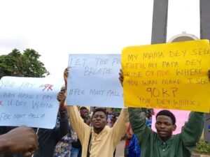 Scores of the students of Obafemi Awolowo University (OAU), on Tuesday, October 3, 2023, shut the institution’s main gate to restrict vehicular movement in protest of the recent increment in tuition fees.