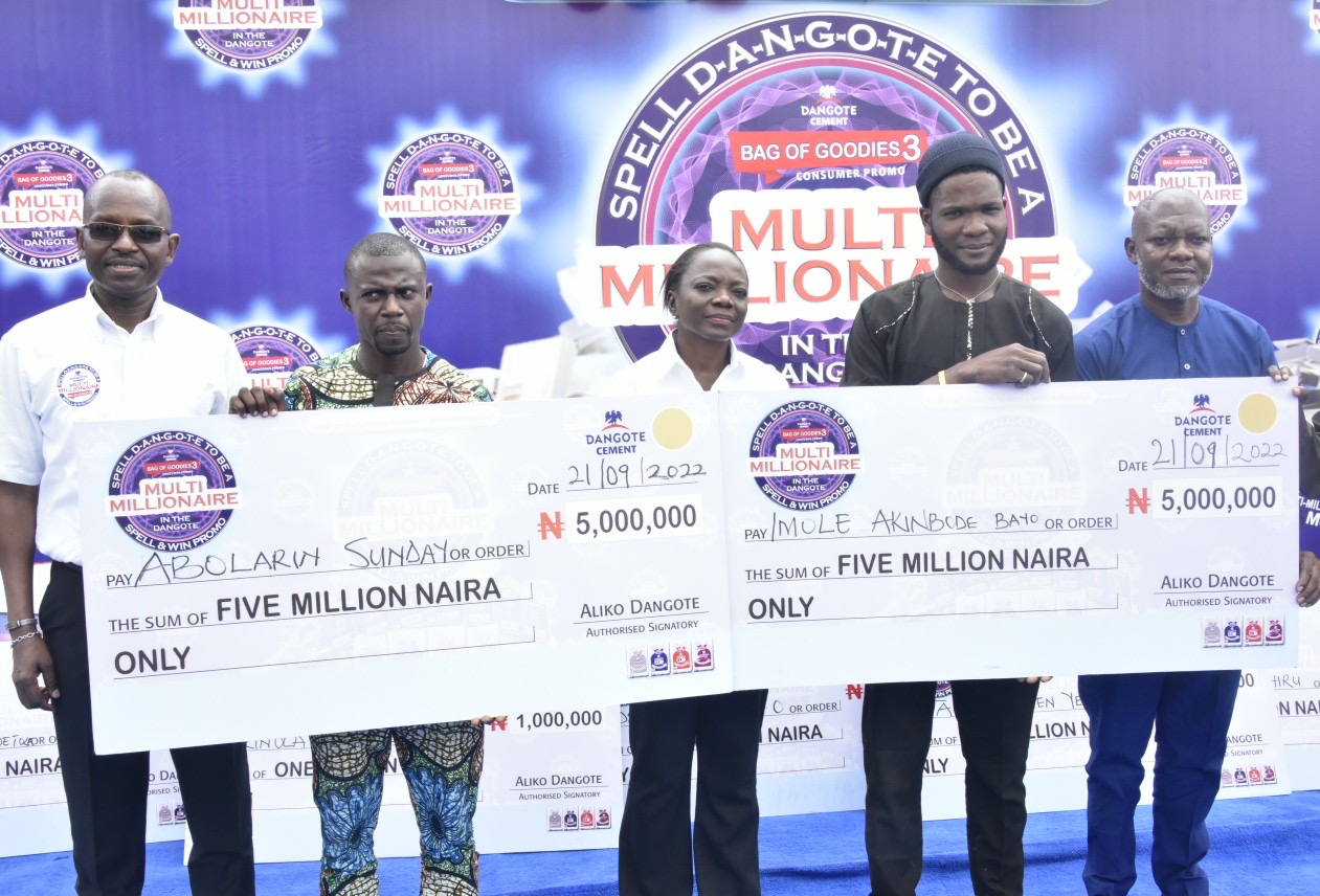 No fewer than 60 people have emerged winners of Dangote Cement promo in the North-East region of the country and Ogun State.