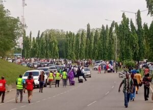 The NLC and TUC members, on Thursday, blocked the entrance of the Abuja airport as many vehicles transporting air travellers to the airport were trapped outside, leaving the passengers stranded.