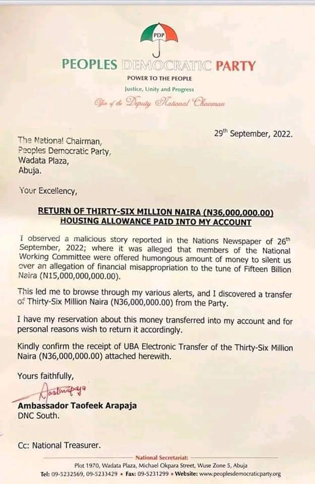 The PDP spokesperson stated that the housing allowance went through the due process of the party “in line with the Conditions of Service and Entitlement of the Staff and Principal Officers of the party.”