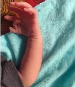 The baby girl has seven fingers on each hand and six toes on each foot.