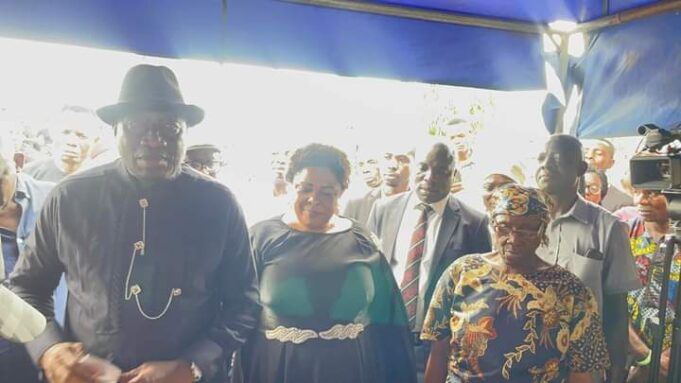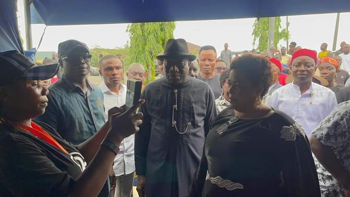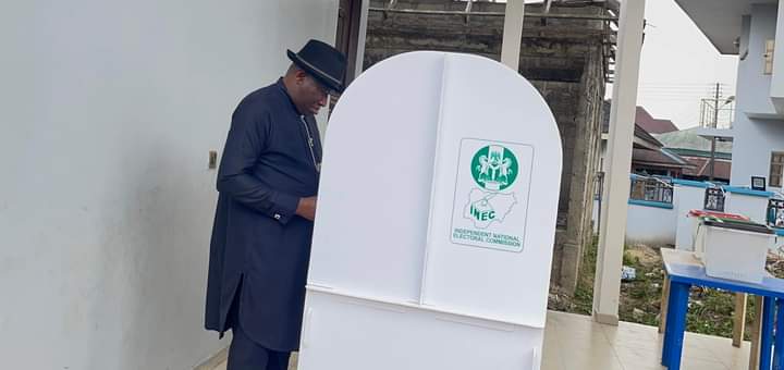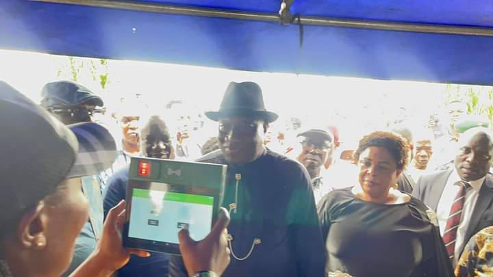 Former President Goodluck Jonathan in company of his wife, Dame Patience and mother, Mrs Eunice Afeni Jonathan, cast their votes at Unit 39, Ward 13 in Otuoke, Ogbia Local Government Area of  Bayelsa at Saturday’s Presidential and National Assembly Election.