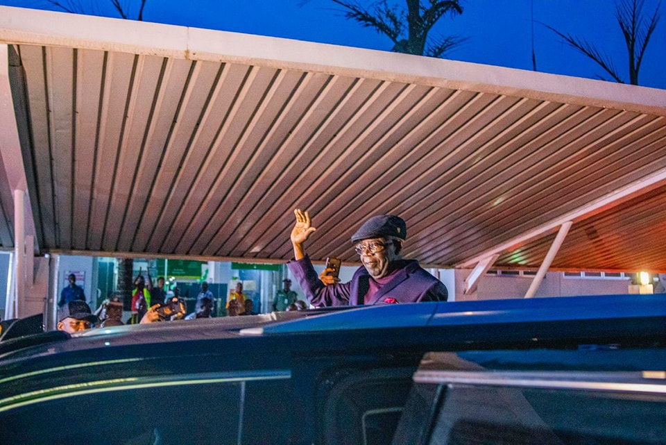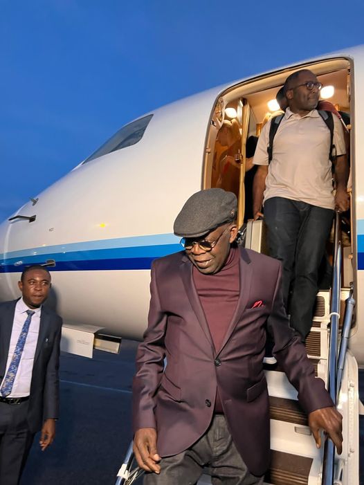 Tinubu was received at the Nnamdi Azikwe International Airport by the Vice Presidential Candidate, Senator Kashim Shettima; Director General of APC Presidential Campaign Council, Governor Simon Lalong; former National Chairman of APC, Adams Oshiomhole, and several supporters amidst shout of City Boy.