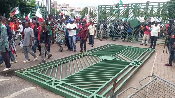 The failure of the security operatives to open the first gate of the National Assembly complex to protesters on Wednesday led to the pulling down of the gate.