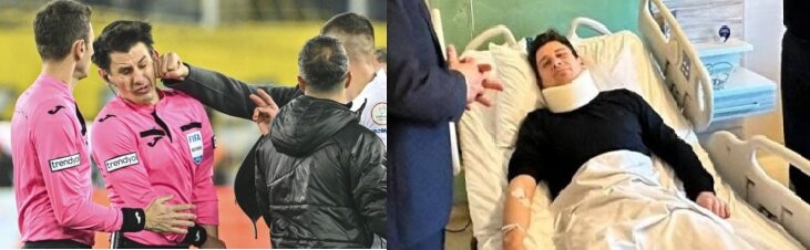 The referee punched by former Ankaragucu president, Faruk Koca, at the end of a Turkish football match has been discharged from the hospital where he was receiving treatment, with a swollen eye