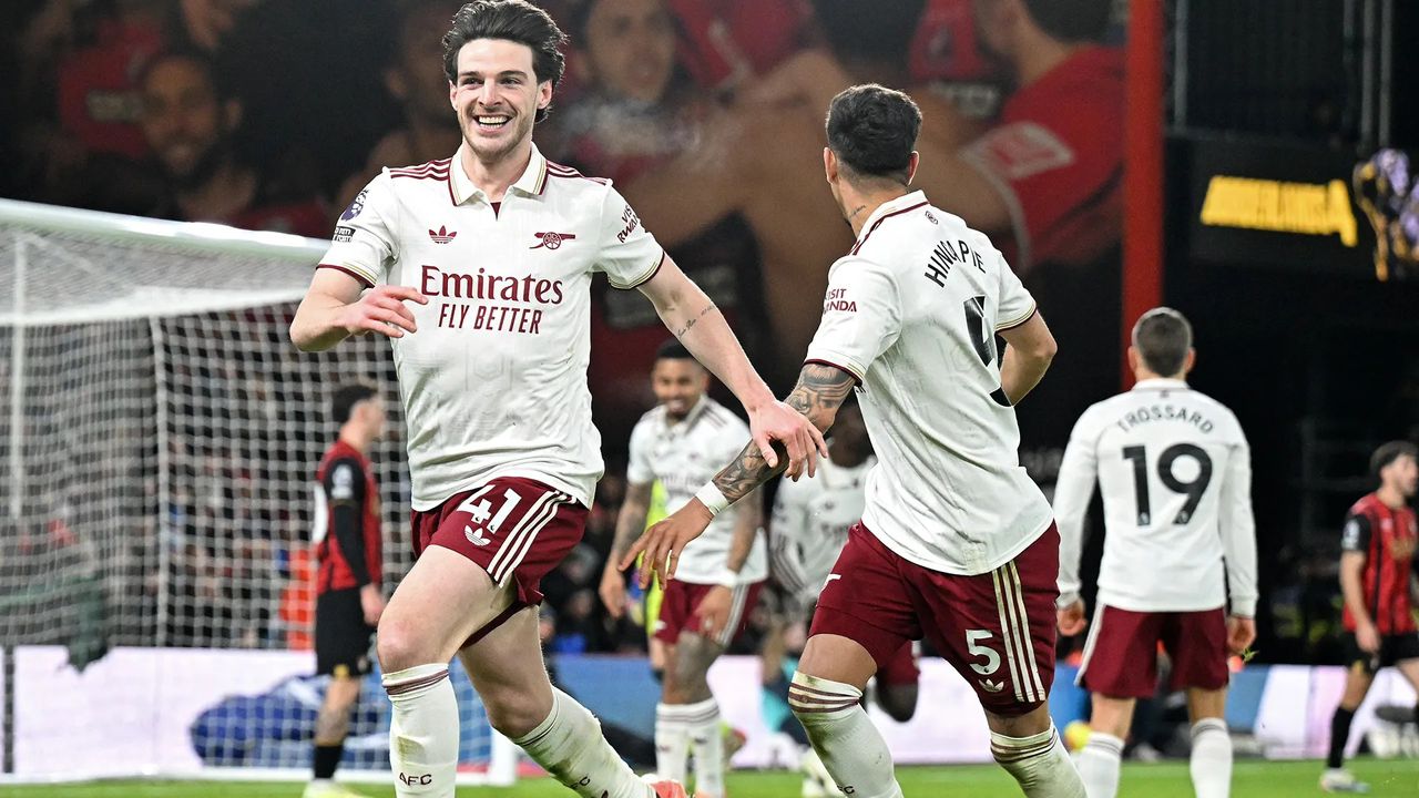 Declan Rice scored two goals to put Arsenal six points clear at the top of the Premier League table via a 3-2 win over Bournemouth on Saturday.