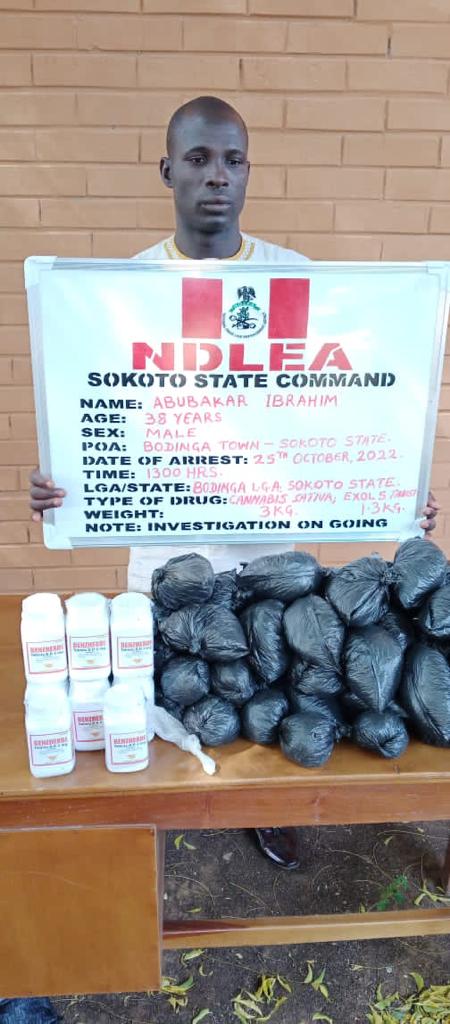 The village head of Gidan Abba in Bodinga local government area of Sokoto state, Abubakar Ibrahim, has been arrested by the operatives of the National Drug Law Enforcement Agency (NDLEA) with 3kgs of cannabis sativa and 4,000 tablets of exol-5 in the state.