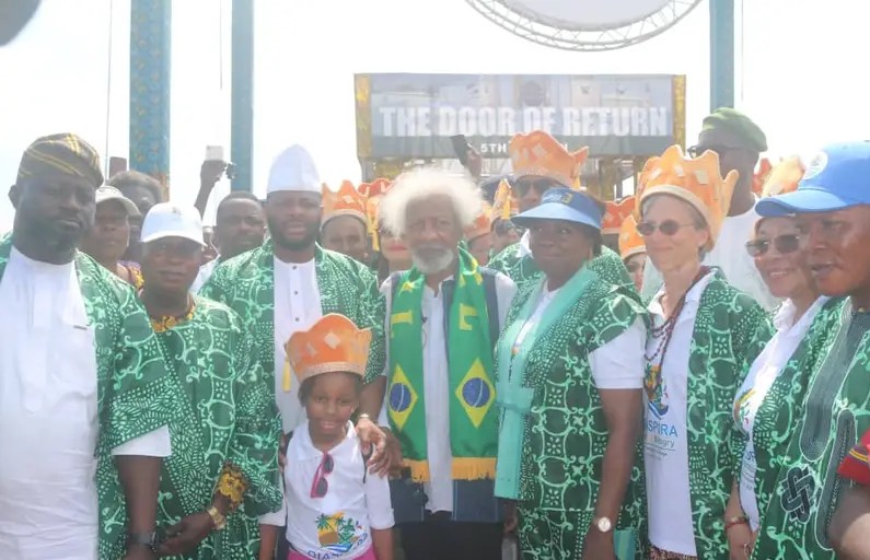 Nobel laureate Prof. Wole Soyinka on Saturday led a symbolic homecoming ceremony for 57 Africans in the Diaspora, marking their reconnection with their ancestral roots during the Fifth Door of Return Ceremony in Badagry, Lagos State.