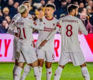 United struck twice in the first half against opponents 76 places below them in the pyramid thanks to goals from Bruno Fernandes and Kobbie Mainoo.