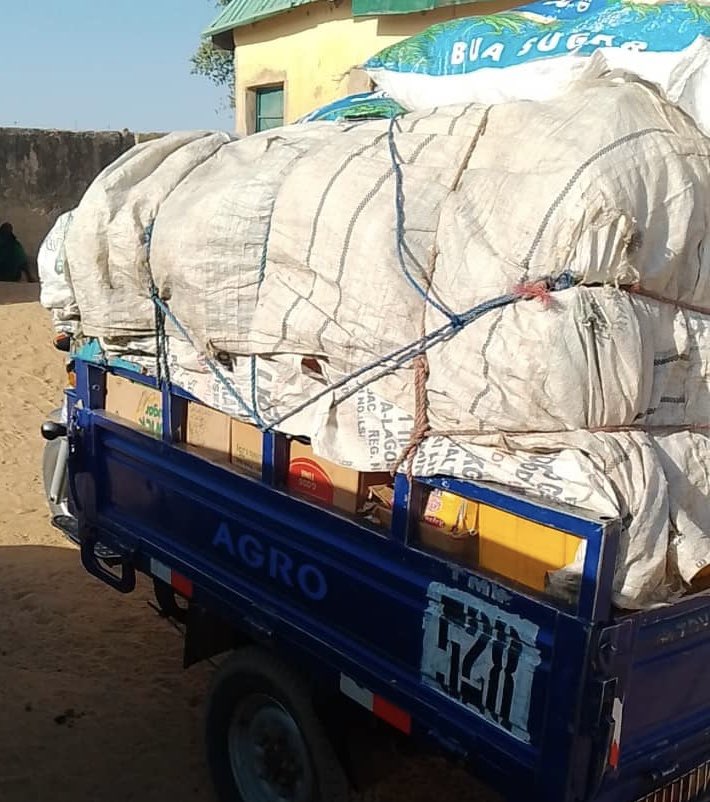 Authorities recovered ₦33,150 in cash, an Android phone, and a blue tricycle (registration TMW-426WB) loaded with assorted foodstuffs and household supplies believed to be intended for insurgents.