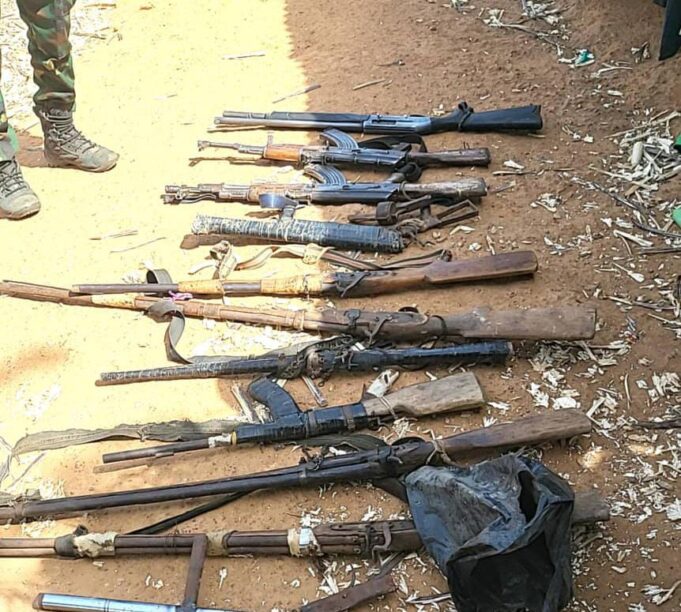 Nwachukwu stated that four terrorists were killed during operations by the troops in Maidaro, Kagi Hill, Kusharki, and Anguwan Madaki in Birnin Gwari Local Government Area of Kaduna State, adding that two AK 47 rifles with two rounds of 7.62mm Special, one automatic pump action gun with three cartridges, six Dane guns, three locally fabricated pistols with one 9mm round and four motorcycles were recovered from the gunmen.