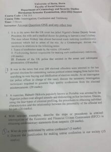 The question was set for the students in the Department of Criminology and Security Studies, Faculty of Social Sciences, UNILORIN.
