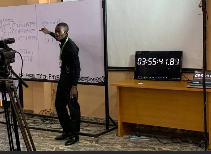 A final year student in the Mathematics Department, University of Ilorin (UNILORIN) in Kwara State, Kazeem Sanusi, has set a new Guinness World Book Record for the ‘Longest Mathematics Lesson’.