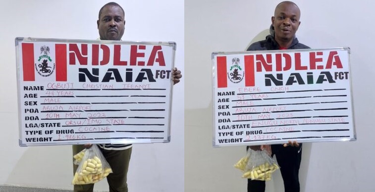 The traffickers – Onoh Ebere, 49, and Christian Ifeanyi Ogbuji, 47 – were intercepted at the Abuja airport on Wednesday, May 10, upon their arrival from Uganda via Addis Ababa, onboard Ethiopian Airlines flight ET 951.