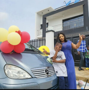Simi, 13-year-old daughter of popular Yoruba actress, Laide Bakare, has gifted her brother, Danny, a Mercedes Benz as his birthday gift.