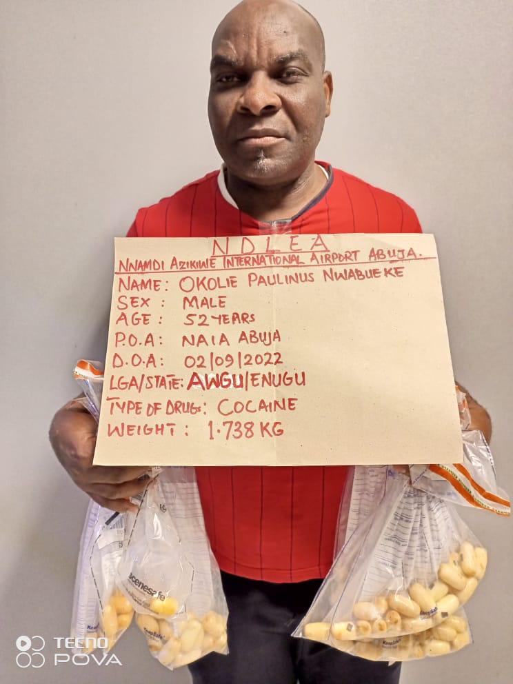 A Brazilian returnee, Okolie Paulinus Nwabueze, has been arrested at the Nnamdi Azikiwe International Airport in Abuja by the operatives of the National Drug Law Enforcement Agency (NDLEA) for importing 92 wraps of cocaine.