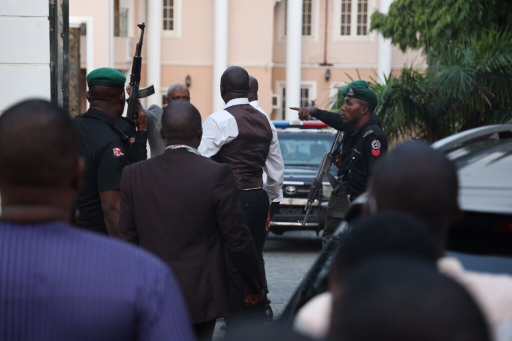 Some of the former governor’s supporters later arrived his residence and protested the presence of the security operatives.