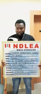 The operatives of the National Drug Law Enforcement Agency (NDLEA) have arrested an ex-footballer, Okafor Emmanuel Junior, at the Murtala Muhammed International Airport, Ikeja, Lagos State, on his arrival from Sao Paulo, Brazil via Addis Ababa, Ethiopia, on board an Ethiopian airlines flight with 1.40kg crack cocaine concealed in his bags.