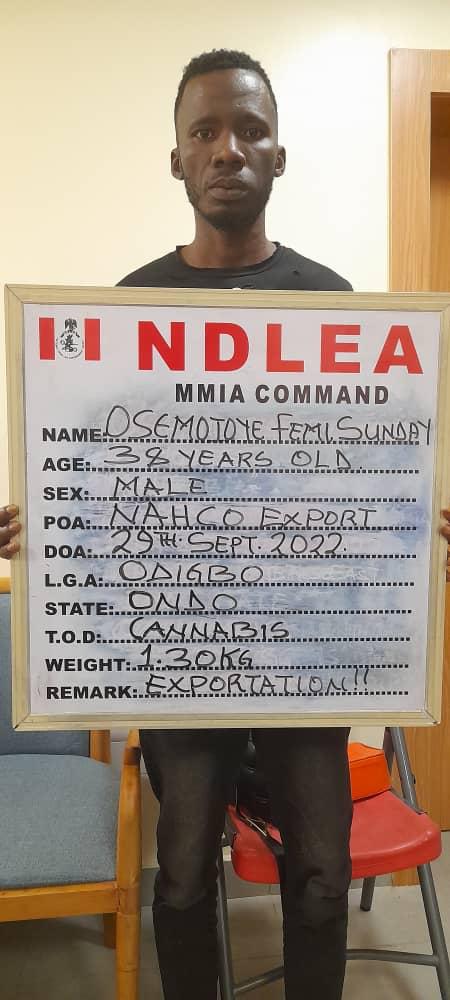 The NDLEA spokesperson stated that weeks after the anti-narcotic agency operatives intercepted 5.20kgs of cannabis concealed in kegs of palm oil going to Dubai at the NAHCO export shed of the airport, the mastermind of the consignment, Ifeanyi Egbuwaohia, has been arrested in the Igando area of Lagos.