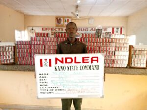 The NDLEA spokesman disclosed that the officers of the anti-drug agency equally arrested a 35-year-old man Nura Yusuf, with 62kg cannabis at Gadar Tamburawa area of Kano State, adding that Abubakar Sani, 40, was also nabbed with 244 bottles of codeine syrup, while 28-year-old Mohammad Alkali was found with 49, 800 pills of tramadol along Kano-Maiduguri Road in Kano on Thursday, March 7.