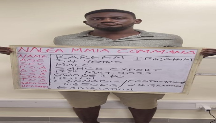 Babafemi noted that five days after the arrest of Efe, a freight agent Kareem Ibrahim was arrested at the SAHCO cargo shed of the airport for attempting to export food items in which were hidden blocks of cannabis weighing 6.65kg and 24grams of ecstasy drug, MDMA to Dubai in UAE.