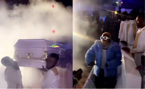Reactions have trailed the video of controversial Nigerian singer, Habeeb Okikiola, popularly known as Portable, arriving at his concert in a coffin.