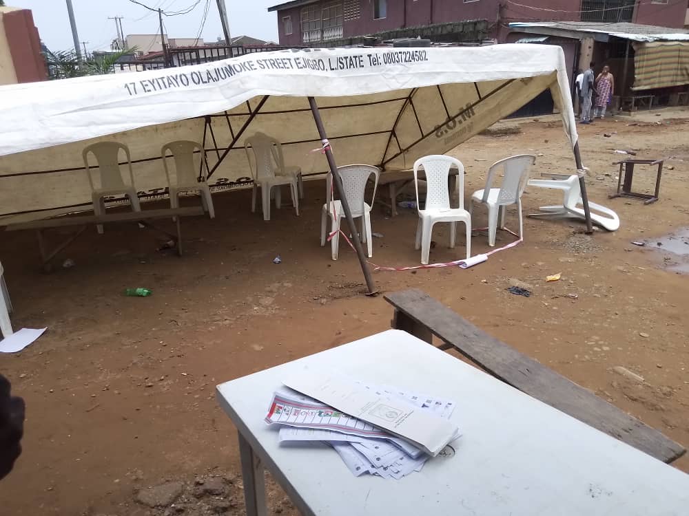 Voting was abruptly stopped at Unit 078, Ward F5, Okeafa, Ilamose Estate, Oshodi-Isolo Constituency 2, Lagos State, as thugs chased voters away during the governorship and state House of Assembly elections on Saturday.
